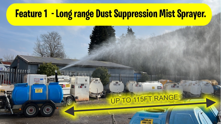 Its 1000/2000 Ltr clean water tank capacity will provide constant dust suppression for up to 30-70 mins.